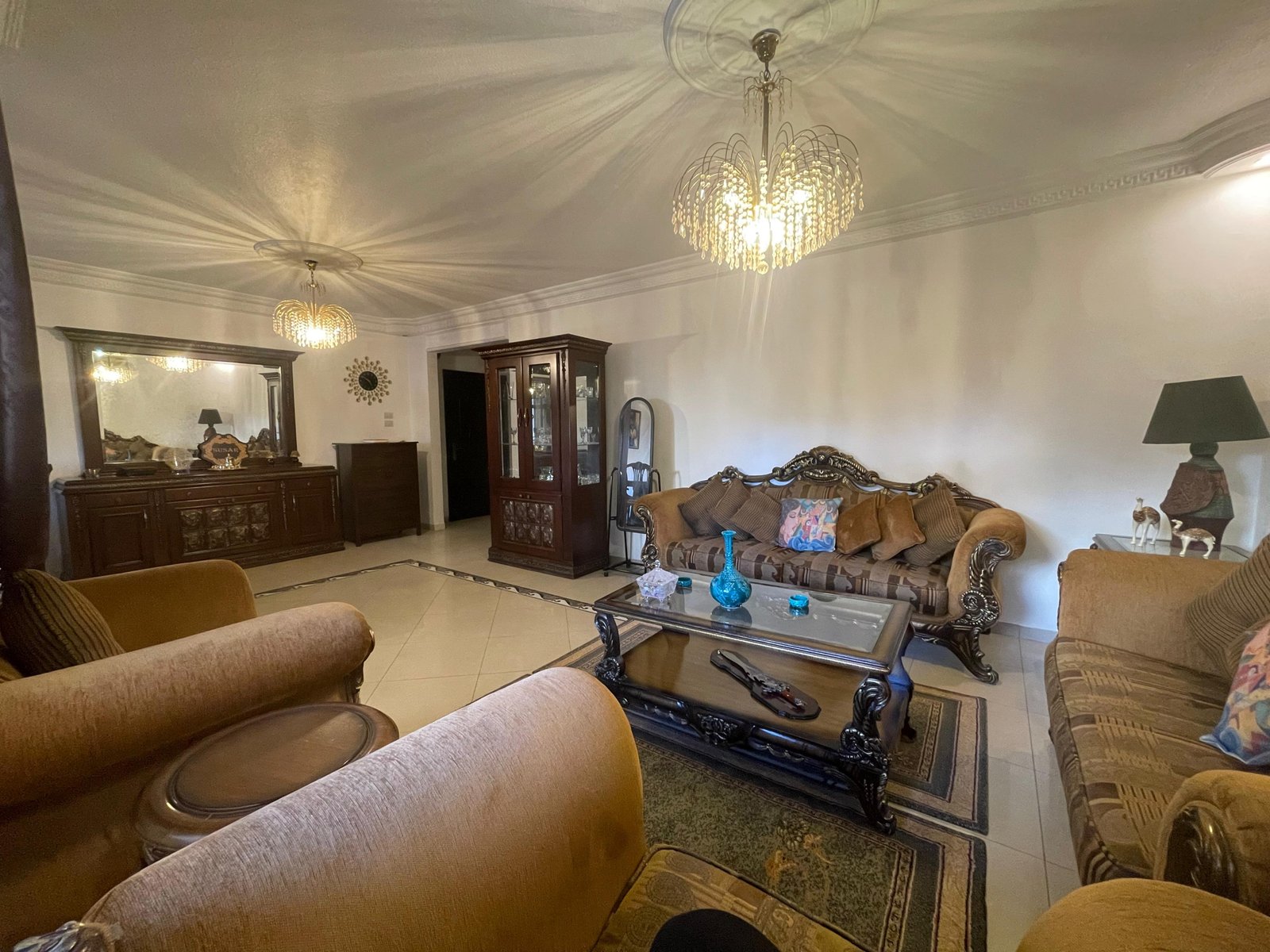 الشقة مفروشة وجاهزة للسكن فوراً، بتوزيع مريح ومساحات كبيرة تعطي إحساس بالفيلا داخل عمارة 🏡